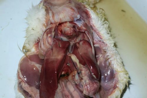 2、當(dāng)大群出現(xiàn)心肌出血、肺部淤血,水腫,腎臟出血,大群精神差、采食量下降明顯的高死亡率時(shí),特別是感冒的后期,建議使用四逆湯(500ml兌水800斤)),四逆湯在治療感冒的同時(shí)有很好的回陽(yáng)救逆的作用,能夠很快提升機(jī)體的陽(yáng)氣,挽救鴨群健康。