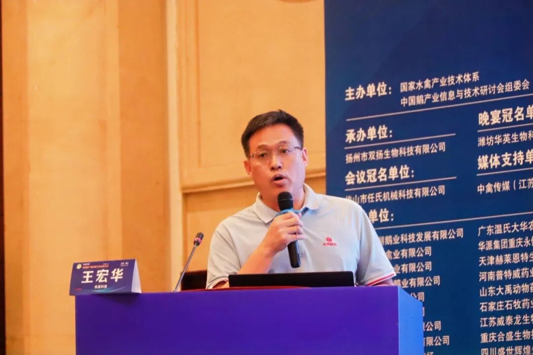 濰坊華英生物科技有限公司作為會議協辦單位隆重出席會議并獨家冠名會議晚宴,集團研發總監王宏華博士在會上作題為《2025年鵝病流行動態及防控技術》的主題報告,引發與會專家和從業者的廣泛關注。