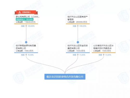 臨沂新程金鑼肉制品集團有限公司認繳出資7000萬,占股70%;另外,山東省臨沂市蘭山區半程鎮沂田村民委員會、臨沂市蘭山區財金投資集團有限公司各占股15%。